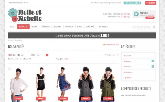 Belle et Rebelle est une boutique de la Plaza St-Hubert à Montréal et plus récemment du centre ville de Sherbrooke, où foisonnent vêtements, bijoux et accessoires. Vous y trouverez une centaine de designers québécois et une panoplie de vêtements biologiques : l'incontournable de l'achat local, responsable, original et unique au Québec.