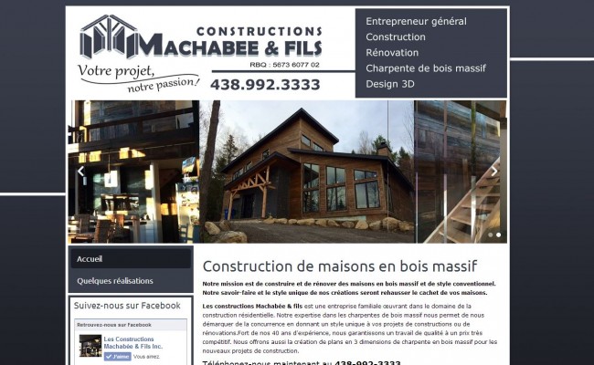 Les constructions Machabée & fils est une entreprise familiale œuvrant dans le domaine de la construction résidentielle. Notre expertise dans les charpentes de bois massif nous permet de nous démarquer de la concurrence en donnant un style unique à vos projets de constructions ou de rénovations.Fort de nos 40 ans d'expérience, nous garantissons un travail de qualité à un prix très compétitif. Nous offrons aussi la création de plans en 3 dimensions de charpente en bois massif pour les nouveaux projets de construction.